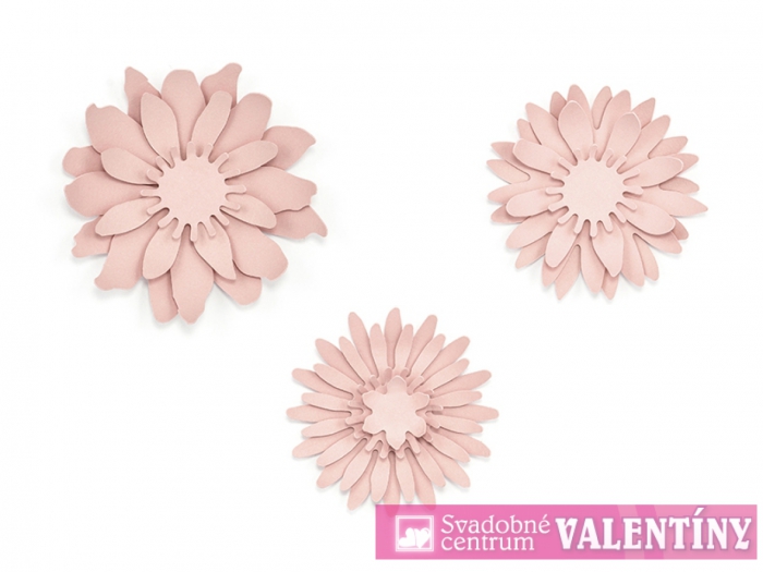 Dekorácia kvetov pudrovo ružová. V balení sú elementy kvetov 12ks ,ktoré spájate.Celkovo zložíte tri kvety. Balenie obsahuje aj časti na spájanie.
